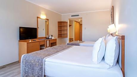 Located in Side, a 6-minute walk from Evrenseki Public Beach, Miramare Queen Hotel - Ultra All Inclusive provides accommodations with a seasonal outdoor swimming pool, free private parking, a fitness center and a garden. Featuring a kids' club, this property also welcomes guests with a restaurant, a water park and a terrace. The property has a shared lounge, a 24-hour front desk and currency exchange for guests. The hotel will provide guests with air-conditioned rooms offering a desk, a coffee machine, a minibar, a safety deposit box, a flat-screen TV, a balcony and a private bathroom with a shower. All guest rooms will provide guests with a closet and an electric tea pot. Guests at Miramare Queen Hotel - Ultra All Inclusive can enjoy a buffet breakfast. The accommodation offers a hammam. You can play table tennis, darts and tennis at this 5-star hotel, and bike rental and car rental are available. Green Canyon is 17 miles from Miramare Queen Hotel - Ultra All Inclusive, while Aspendos Amphitheatre is 17 miles away. Antalya Airport is 40 miles from the property.