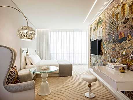 Experience an abundance of unparalleled facilities and features at Mondrian Doha. Maintain seamless communication using the complimentary Wi-Fi at hotel. Effortlessly arrange transportation to and from the airport using the hotel's airport transfer services. Discovering Doha becomes even more accessible through the taxi, car hire and shuttle amenities provided at the hotel. For visitors traveling by automobile, complimentary parking is available. During your stay at this fantastic hotel, the attentive front desk personnel can provide you with a range of amenities such as concierge service, express check-in or check-out, luggage storage and safety deposit boxes. In search of city's top entertainment, seek assistance at the hotel's ticket service and tours for reservations. At the hotel, utilize the on-site dry cleaning service and laundry service to maintain your beloved travel attire fresh, allowing you to bring fewer clothes.Craving relaxation? Make the most of your stay at the Mondrian Doha with convenient amenities like 24-hour room service, room service and daily housekeeping at your disposal.For visitors wishing to smoke, designated smoking zones can be found.At Mondrian Doha, every guestroom is provided with convenient amenities and fittings to ensure a comfortable stay. Enhance your experience at hotel with the knowledge that certain rooms are equipped with linen service and air conditioning for your convenience. A few accommodations within Mondrian Doha offer unique design elements such as a balcony or terrace.Certain rooms offer in-room amusement features such as the television for your enjoyment.In select rooms within the hotel, a refrigerator, a coffee or tea maker and mini bar is available to cater to your requirements when desired.It is worth noting that certain guest bathrooms feature a hair dryer, toiletries and bathrobes for your convenience. Begin your day with a scrumptious on-site breakfast available each morning at Mondrian Doha.Begin your day feeling refreshed and invigorated as you enjoy a delightful cup of quality coffee available at the cafe situated within the hotel.At the hotel, an assortment of easily accessible and delicious meal choices are available to satisfy your appetite whenever it strikes. At Mondrian Doha, they are committed to catering to your unique requirements. They offer a variety of meal choices, encompassing halal alternatives for those with special dietary preferences.Create unforgettable moments with your fellow voyagers just steps away, at hotel's bar, nightclub and casino, for a delightful evening together. At the hotel, discerning guests can also enjoy on-site culinary facilities like BBQ facilities tailored to their preferences.During your stay at hotel, an array of engaging activities and amenities guarantees a delightful experience.Conclude your holiday perfectly with a visit to massage, hot tub, salon, steam room, spa and sauna on your final days.Be sure to drop by the pool at hotel at least once during your stay. Discover the fitness amenities at hotel to maintain your health and strength during your getaway.
