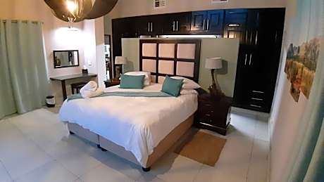 Set in the Black Rhino Game Reserve, Morokolo Safari Lodge Self-catering offers an outdoor pool with view of the Pilanesberg Mountains and a hot tub. Guests can experience an African safari with a dedicated game ranger. Each air-conditioned suite has an private bathroom with modern finishes, a seating area, tea-and-coffee making facilities and a private patio. The main entertainment area is open-plan, and has a lounge with satellite TV and DVD player, a bar area with pool table and various board games, and an outside patio area overlooking the swimming pool with a view of the Pilanesberg Mountains Located on the slopes of the Pilanesberg Mountains, Morokolo Safari Lodge Self-catering is 22 mi from Sun City and 32 mi from Pilanesberg International Airport. As the Black Rhino Game Reserve is a private concession, entrance is only possible through the Black Rhino Reserve gate, located on the R565. The pool table, patio and hot tub are available to the 4 suite lodge only. The swimming pool and safaris are shared amenities. - This is a self-catering property with no restaurant facilities or chefs - No day visitors allowed - This is a no noise property - The rules governing game drives do not permit children under 6 on the game drives for their own safety. - Children between 6 - 12 permitted at the range's discretion.