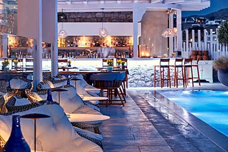 Set on top of the famous Mykonian hill, Myconian Kyma, a Member of Design Hotels, all dressed up in the original Myconian white color, offers 5-star accommodation featuring a state-of-the-art spa centre. Rooms and suites at Kyma follow the straight lines and curves of the Cycladic architecture. Some of them have their own private pool overlooking the sea, and they all come with a satellite TV, minibar, slippers and free toiletries. At the on-site restaurant, you will taste authentic Mediterranean flavours, and at the hip bar by the main pool you can enjoy your cocktail while taking in the panoramic views over the island. Within 1 km you can visit the cosmopolitan Mykonos Town with its famous windmills and lively nightlife. Mykonos Port is 3 km away. Free private on-site parking is possible and free WiFi is available throughout. License Number(s): 1153425