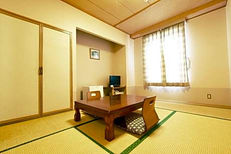 The triple room features air conditioning, a wardrobe, as well as a shared bathroom boasting a bidet and slippers. The triple room offers a safe deposit box, an electric kettle, yukata, heating, as well as a flat-screen TV. The unit has 3 beds.