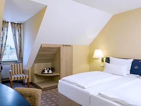 NH Potsdam provides flawless service and all the necessary facilities for visitors. Stay connected with your associates, as complimentary Wi-Fi is available during your entire visit. When arriving by car, take advantage of the hotel's convenient on-site parking facilities. The hotel offers reception amenities including luggage storage and safety deposit boxes to ensure a comfortable stay for guests.Whether it's an extended stay or simply needing fresh attire, dry cleaning service and laundry service provided by hotel ensures your cherished travel garments stay spotless and accessible.Your stay will be comfortable with the presence of room service and daily housekeeping as an in-room amenity for your relaxation and enjoyment. To ensure the well-being and convenience of all visitors, smoking is strictly prohibited throughout the entire hotel. Smoking is permitted solely in the specified smoking zones allocated by hotel.In order to ensure the utmost level of relaxation, the guestrooms feature an inviting design and are equipped with all basic necessities, creating a delightful stay experience. To ensure a pleasant stay, a selection of rooms at hotel come furnished with linen service and air conditioning, all designed with your ease in mind. Several chosen accommodations at NH Potsdam have a balcony or terrace incorporated into the room design. In select rooms, visitors can enjoy a touch of amusement with the availability of television and cable TV for their entertainment needs. Within specific rooms, a coffee or tea maker and mini bar is conveniently available for your use. Understanding the significance of bathroom facilities in enhancing visitor contentment, hotel offers a hair dryer, toiletries, bathrobes and towels within a few chosen chambers. Start your day stress-free at NH Potsdam as breakfast is made available for you on the premises.Various excellent meal offerings at hotel ensure that enticing and easily accessible options are constantly available. Upon your arrival, don't miss experiencing bar for enjoyable in-house evening entertainment.Throughout the day, engage in the entertaining activities available at NH Potsdam. Unwind and conclude each day delightfully by stopping by spa and sauna, ensuring a soothing experience.Guests who enjoy maintaining their fitness regimen while on holiday can visit the fitness center provided by hotel.