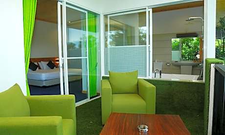 This chalet's special feature is the pool with a view. Featuring a private entrance, this spacious chalet also consists of 1 bedroom, a seating area and 1 bathroom with a bath and a shower. The air-conditioned chalet provides a flat-screen TV with cable channels, soundproof walls, a mini-bar, a tea and coffee maker as well as garden views. The unit offers 2 beds.