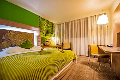 4-star Novotel Łódź Centrum is located in the very center of Łódź. The popular Piotrkowska Street with numerous bars and restaurants is just 656 feet away. It offers modern accommodations with Wi-Fi. The rooms are decorated in a modern and stylish way. Each room is air-conditioned and comes with a large bed, a flat-screen TV and a private bathroom with heated floors, a hairdryer and toiletries. There are also tea/coffee making facilities, a mini-bar and a safe. The restaurant at Novotel Łódź Centrum offers a breakfast buffet and serves international cuisine dishes. The hotel has a professional, air-conditioned business center with eight conference rooms equipped with projectors and sound system. There are also three computer stands with Apple computers and a kids corner with an Xbox. Guests can benefit from facilities such as a fitness center and a library or rent out bicycles and explore the city. Galeria Łódzka Shopping Mall is just opposite. The Atlas Arena is within 0.6 mi and it takes a 15-minute drive to get to the Władysława Reymonta Airport, and 10 minutes to reach the main Train Stations, such as Łódź Kaliska and Łódź Fabryczna.