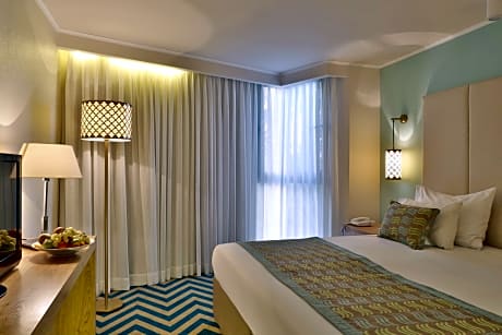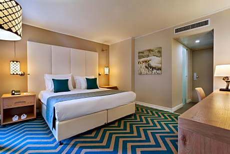With a unique Moroccan design, Oasis Dead Sea Hotel is set on the shores of the Dead Sea in Ein Bokek. It offers a modern wellness center and a shared pool at a partner hotel. Free WiFi and parking are provided. All rooms at the Oasis Hotel offer views of the sea. Each comes with air conditioning, and a kettle with tea and coffee. Breakfast and dinner are served in the Marin dining room. The striking façade of the Oasis welcomes you to a hotel specially designed for your well being. Here you can relax in the traditional Turkish bath, sauna and hot tub. If you feel like something more active there is also a gym. The hotel is 1.9 mi north of Zohar Hot Springs. It is ideal for visiting the archaeological ruins of Masada, the cable car for which is 15 minutes' drive away.