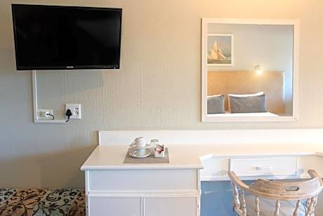 This double room is carpeted and offers a TV, fan and tea-and-coffee making facilities. The bathroom is fitted with a bath-and-shower combination.
