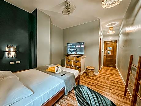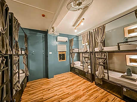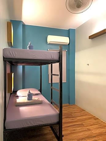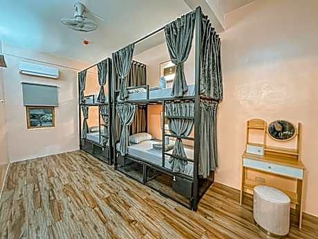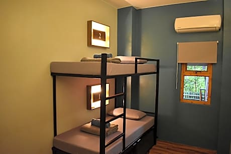 The dormitory room features air conditioning and a tiled floor, as well as a shared bathroom boasting a shower. The unit has 4 beds.