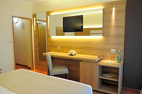 Panorama Hotel is located on a cliff above the Krka canyon, offering amazing panoramic views. Guests can use the swimming pool for free. It offers a bar, restaurant and a fitness center. Hotel Panorama is located next to the highway between Vodice and Sibenik, near the Šibenik Bridge. Enjoy the superb views of the town of Šibenik and the Krka's sunken delta - the port of Šibenik and the islands of the archipelago. In the cozy and relaxing atmosphere of the La Vista Restaurant and bar, seating up to 200 guests, a high-quality selection of fish and meat specialties are prepared in Mediterranean way with homemade products and olive oil, also the restaurant is offering a wide choice of selected wines and other drinks. The aperitif bar within the restaurant area is open to hotel guests and all those who want to enjoy the wonderful atmosphere of the Panorama Hotel. The Panorama Hotel is an ideal place for the celebration of your wedding. We will assist you with our expert advice concerning the organization of this feast, which will surely be a spectacular one.