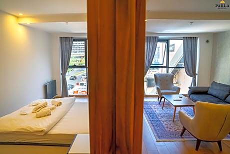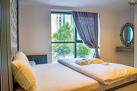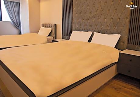 Experience an abundance of unparalleled facilities and features at PARLA SUİTE HOTEL. Maintain seamless communication using the complimentary Wi-Fi at hotel.Guests can avail parking facilities at the hotel.Reception assistance is offered at the hotel featuring express check-in or check-out. For extended visits or whenever required, the laundry service ensures your preferred travel garments remain fresh and accessible.During leisurely days and evenings, on-site amenities such as daily housekeeping enable you to fully enjoy your accommodation.Kindly note that smoking is prohibited in the hotel to ensure fresher air for all visitors.At PARLA SUİTE HOTEL, every guestroom is provided with convenient amenities and fittings to ensure a comfortable stay. Enhance your experience at hotel with the knowledge that certain rooms are equipped with linen service, blackout curtains and air conditioning for your convenience. A few accommodations within PARLA SUİTE HOTEL offer unique design elements such as a separate living room.Certain rooms boast in-room amusement features such as television, in-room video streaming and cable TV, offering guests an enjoyable stay. In select rooms within the hotel, a refrigerator, a coffee or tea maker, bottled water, instant coffee, instant tea and mini bar is available to cater to your requirements when desired. It is worth noting that certain guest bathrooms feature a hair dryer, toiletries and bathrobes for your convenience. Begin your day feeling refreshed and invigorated as you enjoy a delightful cup of quality coffee available at the cafe situated within the hotel. Enjoy an entertaining evening with your fellow travelers at the hotel's bar.At PARLA SUİTE HOTEL, visitors have the option to receive groceries directly in their accommodation, ensuring outstanding comfort and simplicity when it comes to meals.