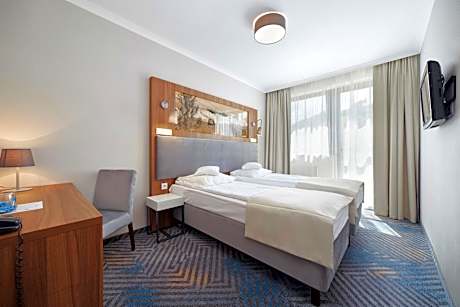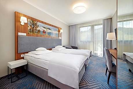 Located within the Popradzki Landscape Park, the 4-star Hotel Pegaz Hotel is surrounded by the mountains and valleys of the picturesque Krynicka Jaworzyna. This hotel features superior and standard double rooms, and apartments. Most of them boast a balcony with views of the mountains. The Hotel Pegaz has its own restaurant where guests can enjoy traditional mountain food and Polish cuisine. There is also a coffee shop and bar. There is also a wellness center where guests can relax in the sauna, a steam bath and a hot tub. They can also enjoy a massage or a cosmetic treatment. The indoor pool has wonderful views of the ski hills. The Hotel Pegaz Hotel occupies a quiet location outside the resort of Krynica Zdrój. The hotel is well placed for the modern ski station with its elevators and access to the slopes.