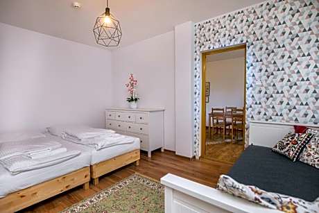 Providing free toiletries, this quadruple room includes a private bathroom with a shower. The quadruple room provides a flat-screen TV, a private entrance, a wardrobe, a sofa as well as garden views. The unit offers 4 beds.