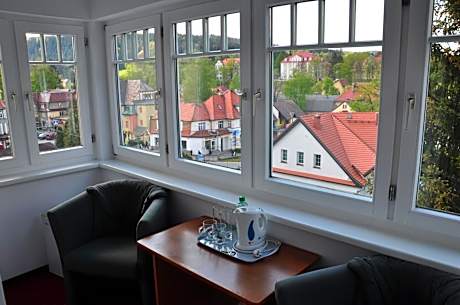 Offering a garden and a bar, Pensjonat Panorama in Polanica-Zdrój is close to Polanica Zdroj Train Station and Chess Park. This bed and breakfast offers free private parking and an elevator. Featuring a private entrance, the bed and breakfast allows guests their privacy. At the bed and breakfast, units have a desk and a flat-screen TV. The rooms are fitted with a kettle, a private bathroom, and free Wifi, while selected rooms will provide you with a balcony and some have mountain views. At the bed and breakfast, the units are fitted with bed linen and towels. A selection of options including warm dishes, local specialities, and fresh pastries are served for the continental breakfast. Guests at the bed and breakfast can enjoy cycling and hiking nearby, or make the most of the sun terrace. Kudowa Zdrój Train Station is 15 miles from Pensjonat Panorama, while Errant Rocks is 16 miles away. Copernicus Wrocław Airport is 65 miles from the property.