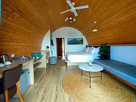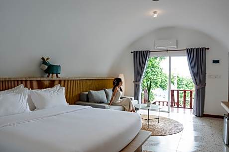 The spacious family room offers air conditioning, a mini-bar, as well as a private bathroom featuring a shower and a bidet. The family room is furnished with a desk and a seating area and features a dining area, a wardrobe and garden views. The unit offers 3 beds.