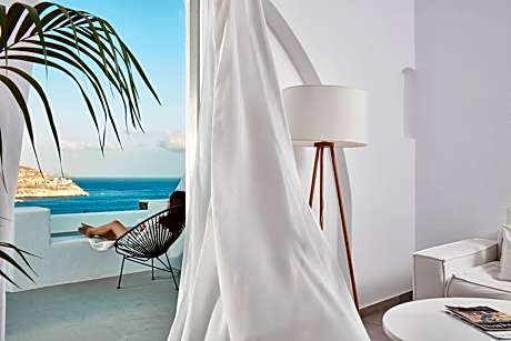 Pietra e Mare - Mykonos Moments is located in Kalo Livadi, one of the most beautiful beaches,7.5 mi from Mykonos Town, overlooking the Aegean Sea. The hotel offers 30 rooms which combine fine elegance with Cycladic tradition. Each offers balcony with sea views and is equipped with modern comforts. Guests can enjoy or spend lazy days by the hotel’s fresh-water swimming pool. The cosmopolitan Mykonos Town, as well as the airport and the port, are only a 10-minute drive.