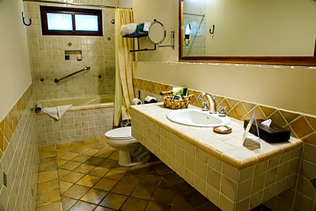 In the historic town of Antigua, Guatemala, this hotel is within walking distance of main churches and colonial buildings. Porta Hotel Antigua offers a spa and an outdoor swimming pool. The rooms at Porta Hotel feature wood or carpet floors, and beam ceilings, while most of them have a fireplace and offer views of the pool or the gardens. There is another room section that can be reached through a tunnel, resembling a cloister. The spa offers a special indigenous steam bath called Temascal. There is also a beauty parlor and a massage room. Los Moros Restaurant serves traditional Guatemalan cuisine, and the bar offers snacks and drinks. The nearest bus station is one mile away. Guatemala City is a 35 minute drive away, while La Aurora International Airport is 40 minutes from the hotel.