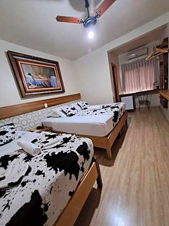 Pousada Sonho Meu Foz is located in the center of Foz do Iguaçu. It features a pool and a tropical garden. Free WiFi is included and a guest computer is available in the lobby. Each room has a TV, air conditioning and a private bathroom. Additional amenities include a telephone and mini fridge. The property also has chargers for electric cars and heated pools. A complimentary breakfast including breads, cakes, fruit, drinks and some hot items is served each morning. Pousada Sonho Meu Foz has a games room with billiards. Guests can also exercise in a small gym. A communal kitchen is available for the preparation of light meals. This accommodations is 9.3 mi from Cataratas International Airport and 11 mi from the Brazilian side of the Iguaçu Falls.