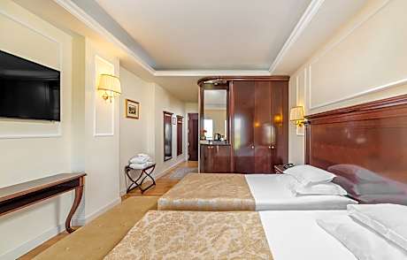 Modern rooms feature a private balcony with a view, comfortable seating area and marble bathroom. Satellite TV, air conditioning and internet access are available.
