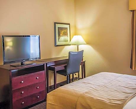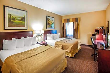Located in the center of the city, the Quality Inn and Suites in Peoria, IL offers easy access to outdoor activities at Peoria Lake, as well as countless dining and entertainment options including the Riverfront Museum and Peoria Chiefs Baseball. The hotel is also convenient to Peoria Riverfront Shopping, the Kickapoo Creek Winery and Peoria Zoo. Guests of the hotel are invited to relax in the indoor heated pool and hot tub, utilize the business center for access to copy and fax services, shop in the on-site guest convenience store and work out in the Fitness Center. Other amenities include: free full breakfast, free wireless high-speed Internet access and free daily newspaper. All guest rooms offer a flat-screen television with cable, refrigerator, microwave, desk, gourmet coffee maker, alarm clock, hair dryer, iron and ironing board. This is a pet-friendly hotel, with four-legged friends allowed to stay for a fee.