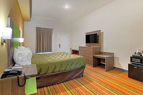 Experience an abundance of unparalleled facilities and features at Quality Inn & Suites. For visitors traveling by automobile, complimentary parking is available.Kindly note that smoking is prohibited in the hotel to ensure fresher air for all visitors.At Quality Inn & Suites, every guestroom is provided with convenient amenities and fittings to ensure a comfortable stay.In select rooms within the hotel, a refrigerator and a coffee or tea maker is available to cater to your requirements when desired. Essential restroom facilities are equally significant, and at the hotel, some visitor bathrooms offer a hair dryer to enhance your experience. Begin your day carefree at Quality Inn & Suites, as complimentary breakfast is offered for your convenience.During your stay at hotel, an array of engaging activities and amenities guarantees a delightful experience. Be sure to drop by the pool at hotel at least once during your stay.At Quality Inn & Suites, utmost care is taken to ensure guests' comfort. Relish your preferred beverage in your swimwear by the hotel's poolside bar.