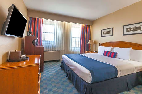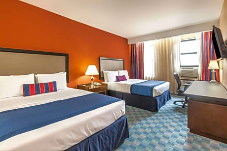This hotel is 2.2 mi from the Liberty State Park and Science Center and the Statue of Liberty. It offers an airport shuttle to Newark Liberty International Airport. The Journal Square PATH subway station is 1804 feet away. The rooms at the Ramada by Wyndham Jersey City are furnished with a microwave and refrigerator. They are equipped with free Wi-Fi and cable TV with the HBO channel. An on-site gym and business center are part of this smoke-free hotel. A continental breakfast is served in the mornings and an ATM is located on site. Madison Square Garden and Times Square are both 7.8 mi away from Ramada by Wyndham Jersey City. Lincoln Park is 1.4 mi from the hotel.