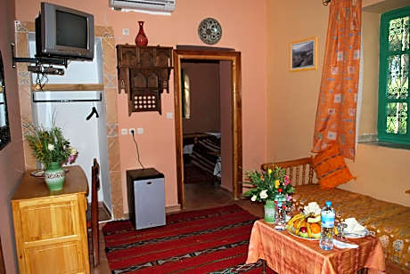 This traditional riad is located opposite the High Atlas Mountains, between Zaïda and Midelt. It offers an outdoor swimming pool and suites that come with microwaves and fridges. The suites at the Riad Mimouna De Timnay are bright and airy and equipped with air conditioning. Each has a TV with cable channels and a mini-bar. The Riad Mimouna has an on-site restaurant, which serves traditional Berber cuisine. Guests can relax on the outdoor sun terrace. Facilities at the Mimouna De Timnay include a business center with free internet access and a 24-hour reception.
