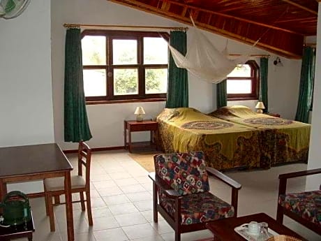 Situated in the heart of Cape Point, this hotel is a short 5-10 minute walk from attractions like the craft and fish markets, restaurants, bird sanctuary, botanical garden, Old Cape Road Lake, and the beach. Nearby, you'll find the UN offices and various embassies. Bakau's vibrant center, with its lively bars, shops, and public transport links, is just 1 km away. Banjul is a quick 10-minute drive, while Abuko Park and Yundum International Airport are 15 km and 25 km away, respectively. Housed in a charming colonial-style building dating back to 2000, this air-conditioned hotel offers 22 spacious rooms. Guests are welcomed in a lobby with 24-hour reception and check-out service, a safe, and currency exchange. Enjoy free Wi-Fi and ample parking. The hotel also features a bar, restaurant, conference facilities, and room and laundry services. The generously sized rooms boast large windows, providing plenty of natural light. Each room features a balcony, many with garden or sea views, and an en suite bathroom with a shower and hairdryer. A double bed, kitchenette with a fridge, microwave, and tea/coffee making facilities, direct dial telephone, satellite TV, internet access, and individually controlled air conditioning complete the comfortable accommodations. Guests can unwind on the sun terrace, furnished with loungers and parasols. For the active traveler, sailing trips on the river offer breathtaking views of the mangrove swamps and Oyster Creek.