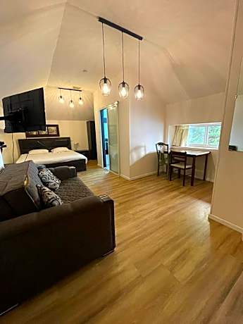 A very spacious room with an extra long bed, a kitchenette and fridge. The additional sofa opens into a double bed. The room also features a shower and toilet. A plasma TV with cable channels is available, while the fridge offers free mineral water.