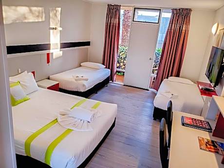 Sandors Motor Inn is an inner-city motel set in a beautiful tropical garden with access to free, secure, on-site parking, an outdoor swimming pool a children's pool. Outdoor furniture and barbecue facilities are provided. Guests enjoy free WiFi. Sandors Motor Inn is located opposite Mildura Tourist Information Center and Mildura Waves Aquatic and Leisure Center. There are several restaurants, cafes and shops within walking distance and a 5-minute drive to the banks of the Murray River and the Mildura Golf Course. Mildura Airport is a 10-minute drive away. There are a range of room types at Sandors Motor Inn, from Standard to Deluxe. All rooms are air-conditioned and include complimentary tea/coffee making facilities, outdoor furniture and a flat-screen TV. There is a free guest laundry. The light continental breakfast consists of cereal, toast, juices, tea, coffee and fruit only.