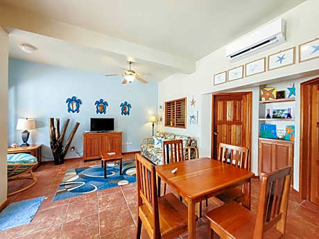 Located on a private beach on Ambergris Caye, Sapphire Beach Resort offers outdoor pools, a restaurant and room service. It is just 492 feet from a coral reef, perfect for snorkeling and diving. All villas and bungalows at Sapphire Beach Resort have views of the pool, gardens or sea. Each one offers air conditioning, a DVD player with free films and a kitchen area with a microwave, oven and coffee machine. Free mobile internet access is included. Sapphire Beach Resort has a private dock and offers free kayaks and snorkeling equipment. Staff can arrange activities and provide information about the island. Taxi transfers to and from San Pedro Airport can be arranged on request.