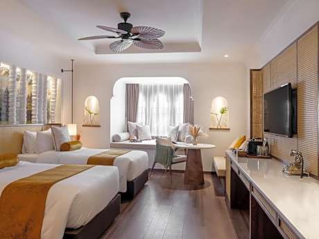 At Sarai and Wander, exceptional service and top-notch amenities create a memorable experience for guests.Complimentary internet access is available in the hotel to ensure you stay connected during your visit.Arrange your trips to and from the airport using the hotel's convenient transportation services booking. Discover the wonders of Siem Reap with ease by utilizing the services provided by taxi and shuttle.For guests with their own vehicle, parking facilities are provided. Continuously receive the support you require through front desk amenities such as concierge service, luggage storage and safety deposit boxes. At the hotel, their ticket service and tours is also capable of assisting with booking tickets and securing reservations for entertainment and adventures. Always look your best in your preferred attire with the dry cleaning service and laundry service provided at Sarai and Wander.Craving relaxation? In-room amenities such as room service and daily housekeeping allow you to maximize your time spent inside the room. Additionally, you can obtain minor travel essentials and miscellaneous items at the convenience stores without departing from the Sarai and Wander.Due to health concerns, smoking is strictly prohibited within the entire premises of hotel. For the health and well-being of all guests and staff, smoking is restricted exclusively to assigned zones.Accommodations come equipped with all the conveniences required for a restful night's slumber.A selection of rooms feature linen service, blackout curtains and air conditioning to ensure your comfort and convenience. A few accommodations in Sarai and Wander incorporate separate living room and balcony or terrace into their architectural arrangement.A few chosen rooms are equipped with television and cable TV to ensure guest amusement.In certain rooms, the hotel offers visitors access to a refrigerator, bottled water, a coffee or tea maker, instant coffee, instant tea and mini bar. In the hotel, certain guest bathrooms come equipped with essential bathroom amenities, such as a hair dryer, toiletries and bathrobes, ensuring a comfortable stay for guests.An additional advantage for guests is the executive lounge, which offers an outstandingly cozy and excellently furnished environment for relaxation. A delightful breakfast is the perfect way to begin your day, and at Sarai and Wander, you can always indulge in a scrumptious meal on-site. All adore a delightful cup of coffee! An on-site coffee shop ensures you can relish a cup of authentic, freshly-brewed coffee every morning -- or whenever you desire it.Allow your journey to be free from the pangs of hunger! On-site eateries offer delicious and accessible meal choices.An evening spent at hotel's bar can offer as much enjoyment as venturing out with your fellow travelers. Are you inclined to prepare your own dishes? You will surely appreciate having the on-site BBQ facilities available. At Sarai and Wander, guests can take pleasure in the delightful recreational amenities provided for their entertainment.Conclude your days in complete tranquility by paying a visit to massage and spa for ultimate relaxation.At Sarai and Wander, a wide array of amenities guarantees a fulfilling experience throughout your visit. Make your holiday truly memorable by taking a rejuvenating plunge into the pool.At Sarai and Wander, the poolside bar provides an excellent incentive to enjoy extended hours in your swimwear.At the hotel fitness center, you have the option to engage in your daily exercise routine or simply alleviate your jet lag by breaking a sweat. License Number(s): 00004463