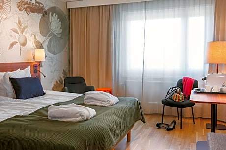 Decorated in warm tones and furnished with Nordic styled interior design, Scandic Kungens Kurva is 4.3 mi Stockholm International Fairgrounds. It offers private parking and free Wi-Fi access. Private parking is available for 100 sek per day. Guests receive complimentary access to the pool, sauna and gym. Children will appreciate the on-site playroom with games and toys. The hotel's restaurant serves international cuisine from the Scandic à la carte menu. Breakfasts are served daily. The lobby bar offers drinks and snacks most evenings. Scandic Kungens Kurva Hotel is located in the heart of the rapidly growing business and shopping district Kungens Kurva; that houses the world's largest IKEA. Stockholm city center is a 20-minute drive away.