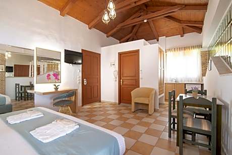 Backed by the pine clad hills of Vassilikos and within walking distance of a safe sandy beach, Sea View Village offers a relaxing setting with a lovely garden and a pool. It is on the southeast coast of Zakynthos, with a panoramic view of the Ionian Sea. Each with a furnished porch with sea view, Sea View Village studios and apartments come with an LCD TV, Cocomat bedding and daily housekeeping. Each is decorated with warm colors and wood furniture. Family owned and managed, Sea View Village is built by local craftsmen with quality ecological materials and in keeping with the traditional architectural style. Greek nights with dancing are hosted at the hotel. Guests are also welcome to participate in the wine making process that takes place at the property. Zakynthos Town is just 4 miles away. Free Wi-Fi is available in the hotel's rooms and lobby area. License Number(s): 1001142