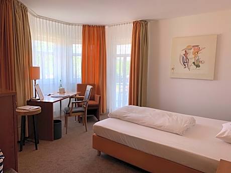 Providing free toiletries and bathrobes, this single room includes a private bathroom with a shower, a hairdryer and slippers. The single room features carpeted floors, a seating area with a flat-screen TV, a wardrobe, a safe deposit box, as well as heating. The unit offers 1 bed.