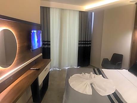 Sette Serenity Hotel has a shared lounge, terrace, a restaurant and bar in Alanya. Featuring a seasonal outdoor swimming pool, the 4-star hotel has air-conditioned rooms with free WiFi, each with a private bathroom. The property has airport transportation, while a bicycle rental service is also available. At the hotel, rooms are equipped with a closet. Rooms contain a safety deposit box, while certain rooms are equipped with a balcony and others also feature sea views. The rooms in Sette Serenity Hotel are equipped with a flat-screen TV and free toiletries. An Asian, vegan or halal breakfast is available at the property. Speaking German, English, Russian and Turkish at the 24-hour front desk, staff are ready to help around the clock. Portakal Beach is a 2-minute walk from the accommodation, while Alanya Ataturk Square is 2.1 miles from the property. Gazipaşa-Alanya Airport is 23 miles away.