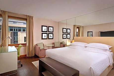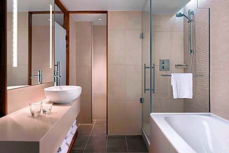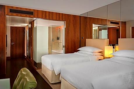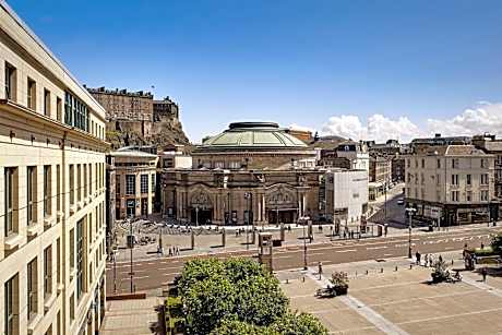 Con vista sul Castello di Edimburgo, lo Sheraton Grand Hotel & Spa si trova nel quartiere finanziario, accanto alla zona commerciale e di intrattenimento del West End, a cinque minuti a piedi da Princes Street e a 500 metri dal Castello di Edimburgo. Le lussuose ed eleganti camere offrono connessione internet wireless gratuita, TV satellitare interattiva a schermo piatto, piccole zone soggiorno e bagni con vasca e cabina doccia separate. Le ampie camere climatizzate presentano splendidi arredi e illuminazione d'atmosfera. Presso la One Spa, gli ospiti possono usufruire gratuitamente della piscina di 19 metri, della palestra e delle sale fitness, e possono usufruire di una varietà di trattamenti estetici e spa durante il soggiorno (da prenotare prima dell'arrivo). L'esclusiva e recentemente rinnovata Thermal Suite e l'Hydropool sul tetto, note come Escape at One, sono disponibili a una tariffa agevolata. Queste devono essere prenotate in anticipo prima dell'arrivo in hotel, insieme alla Thermal Suite e all'Hydropool sul tetto, che sono a pagamento. Un moderno menù scozzese e un'esclusiva esperienza di degustazione di gin sono disponibili presso il vivace One Square Bar + Brasserie.