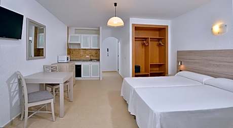 This apartment complex is located in one of the most important tourist destinations in Mallorca with Ibiza-style white houses and stunning beaches. Sol Cala d'Or, which is located 1640 feet from Cala d'Or and close to the fantastic beaches of Cala Gran and Cala Ferrera, is ideal for family trips and enjoy the sea and water sports destination . The apartments consist of a bedroom, a bathroom, a terrace or balcony and a living room with kitchen with fridge, toaster, electric stove and cooking utensils. The studios have one room with sofa bed or two beds and kitchen, bathroom and terrace or balcony. They offer the ideal place to enjoy a holiday with family or a group of friends destination. The resort has facilities for both adults and children. Free Wi-Fi is provided.