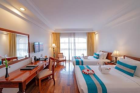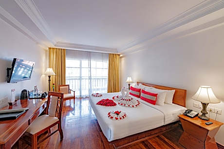 Great care is taken to ensure guests experience comfort through top-notch services and amenities.Remain linked during your visit by utilizing the complimentary internet access available.Prior to your check-in date, you can arrange airport transportation services, guaranteeing a seamless and efficient experience for both arrival and departure. Services offered by taxi, car hire and shuttle at the hotel ensure effortless exploration of Siem Reap. The hotel offers complimentary parking for guests who arrive with their own mode of transport. Effortlessly plan your daily activities and travel requirements with concierge service, express check-in or check-out, luggage storage and safety deposit boxes provided by the front desk services. Securing passes to the city's top attractions is simple with the hotel's ticket service and tours.During your stay at this fantastic hotel, experience comfort and warmth from the delightful on-site fireplace on those chilly days and nights. For extended visits or whenever required, the dry cleaning service and laundry service ensures your preferred travel garments remain clean and accessible. During leisurely days and evenings, in-room amenities such as 24-hour room service, room service and daily housekeeping enable you to maximize your stay in the room.For minor or impromptu requirements, the convenience stores can promptly cater to them without the necessity of stepping out from the hotel. The hotel is completely smoke-free. In limited designated zones, smoking is exclusively permitted.Crafted for coziness, every guestroom provides an array of features, guaranteeing a tranquil night's sleep while maintaining the level of comfort. For a more enjoyable stay, select rooms at hotel are equipped with linen service, blackout curtains and air conditioning.At Somadevi Angkor Premium, a selection of rooms can be found that showcase unique design elements such as a balcony or terrace. For certain chosen rooms, guests can enjoy in-room amusement like television and cable TV as a part of their stay. Rest assured that your hydration needs will be met, as some guestrooms are equipped with a refrigerator, a coffee or tea maker, bottled water, instant coffee, instant tea and mini bar.Maintain your cleanliness and comfort using a hair dryer, toiletries, bathrobes and towels available in select guest restrooms. Chosen accommodation prices might include entry to the executive lounge, offering premium services amid an ambiance of refined extravagance. Each morning at Somadevi Angkor Premium, a scrumptious, homemade breakfast kick-starts the day. Begin your holiday mornings right with your essential cup of coffee, offered daily at the cafe on-site. During your visit, indulge in a range of delightful culinary choices at hotel to enhance your experience. Experience a fantastic evening effortlessly! Relish an entertaining night without venturing beyond the confines of the bar. Snack vending machines operate around the clock, providing you with easy access to treats regardless of the hour.Do you possess exceptional culinary skills? Prepare your meals personally within the hotel at its shared kitchen. Indulge in the numerous pursuits available at Somadevi Angkor Premium.Treat and spoil yourself by stopping at massage, hot tub, salon, steam room, spa and sauna for a memorable experience.Begin your holiday perfectly by taking a plunge into the swimming pool.At the hotel, enjoy a laid-back beverage experience by the poolside bar, sipping on a soothing cocktail.Eliminate those holiday calories by stopping by hotel and making use of their well-equipped exercise amenities.