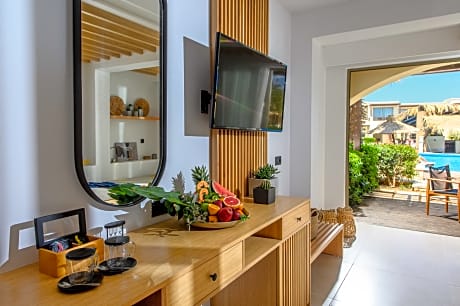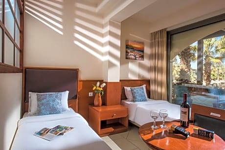 Set on a private part of Analipsi Beach, Stella Palace features 2 lagoon-style swimming pools, 3 children’s pools and 2 tennis courts. Its elegant rooms and suites are surrounded by tall palm trees and landscaped gardens. All air-conditioned units feature stylish furnishings in earthy tones and overlook the garden, the pools or the Cretan Sea. They come with a satellite TV, mini fridge, slippers and free toiletries. Some units also have their own pool with wooden sun deck. The main restaurant serves international and Mediterranean flavors in buffet style and hosts regular themed evenings. Elia Restaurant prepares a la carte dishes based on the Cretan cuisine. Guests can listen to live piano music in the indoor bar, while Kohili and Thalassa pool bars offer exotic cocktails. Guests at Stella Palace have a wide choice of sports activities, such as basketball, badminton and water aerobics. Massages can also be arranged upon request. There's also an indoor pool that can be used upon charge. The lively town of Hersonissos is 2.5 mi away. The hotel is 12 mi from Nikos Kazantzakis International Airport and 16 mi from Heraklion city. Free private parking is possible on site.