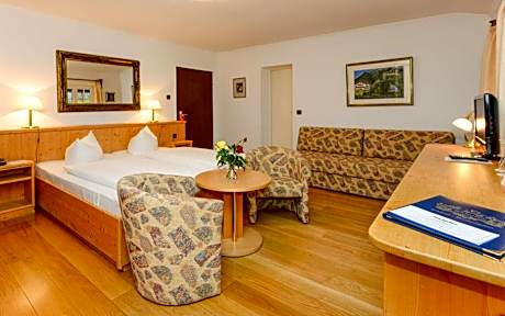 STOLL'S HOTEL ALPINA – your family-run hotel with tradition in Schönau am Königssee In the midst of the impressive Berchtesgaden mountains, STOLL'S ALPINA awaits you, an oasis of peace and relaxation, away from the hustle and bustle of traffic. Centrally located between Berchtesgaden and the picturesque Königssee, our hotel on the Oberschönau high plateau offers the ideal retreat for nature lovers and those seeking relaxation. Our house offers you every comfort: 56 lovingly and individually furnished rooms (classic/country house/retro/Bavarian), most with a balcony. Enjoy the beautiful atmosphere in our 39 ft² garden with a wonderful view of the surrounding mountain landscape and relax on our sunbathing lawns. Start your day with a rich breakfast in our restaurant with garden terrace. In the afternoon we spoil you in the lobby with coffee, cake, hearty snacks and tasty soups. For social hours, there are spacious lounges in the main building with an open fireplace and sun terrace. Our wellness area with a heated indoor pool, solar-heated outdoor pool, sauna, infrared cabin, solarium and fitness room ensures relaxation. For our younger guests, we offer an indoor chill lounge, a "jungle cave" children's play area and outdoor play areas. The hotel is in an excellent location and offers access to numerous sights and leisure activities: Berchtesgaden main station: 1.1 mi Berchtesgaden market: 1.8 mi Triftplatz shopping: 1.1 mi Königssee: 2.2 mi Berchtesgaden salt mine: 2.5 mi Watzmann thermal baths Berchtesgaden: 2.1 mi Kehlsteinhaus with documentation: 3.9 mi Almbachklamm Marktschellenberg: 5.8 mi Wimbachklamm (Ramsau): 4.7 mi Ramsau near Berchtesgaden (town center): 5 mi Magic forest on the Hintersee (Ramsau): 7.6 mi Mozart and festival city of Salzburg: 16 mi Bad Reichenhall: 19 mi Experience your vacation at its best in the natural paradise of STOLL'S ALPINA - your perfect retreat!