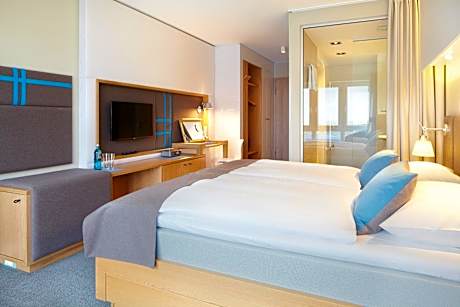 This 3-star-Superior, design hotel is located directly on the promenade of St. Peter-Ording, just behind the dunes. Strandgut Resort offers modern rooms, free WiFi and a restaurant with sea views. The Strandgut Resort offers bright and warmly decorated rooms which feature modern amenities including a flat-screen TV and iPod dock. WiFi internet can be accessed via hotspot in the rooms and the public areas. Tasty meals and snacks are offered in the resort's Deichkind restaurant which features a terrace with sea view. The Samova Lounge offers a complimentary selection of teas. The Strandgut features direct access to the neighboring Dünen-Therme spa center. Enjoy a variety of exclusive treatments as well as a pool area with indoor, outdoor and wave pool. Guests of the Strandgut receive a 20% discount on the admission price. At St. Peter-Ording, you will enjoy the longest sandy beach in Germany. Try out the sports on offer or go for relaxing walks and bike rides through the woods and fields which begin just behind the hotel.