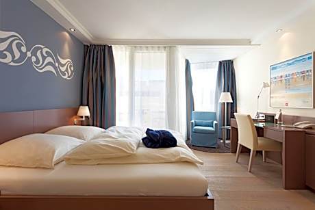 Located in Norderney and with Norderney-Nordstrand reachable within a 5-minute walk, Strandhotel Georgshöhe has concierge services, allergy-free rooms, a restaurant, free WiFi and a bar. The property is around 3.3 miles from Golf Club Norderney, 1.3 miles from Harbour Norderney and a 14-minute walk from Museum of North-Sea Spa. Guests can use the spa and wellness center with an indoor pool, fitness center, and sauna, as well as an outdoor swimming pool. All rooms at the hotel come with a seating area, a flat-screen TV with satellite channels, a safety deposit box and a private bathroom with a shower, free toiletries and a hairdryer. The rooms include a coffee machine, while selected rooms also feature a terrace and others also feature sea views. The rooms will provide guests with a desk and an electric tea pot. A buffet breakfast is available at Strandhotel Georgshöhe. Spa and wellness facilities including a hot tub and a hammam are at guests' disposal during their stay at the accommodation. You can play table tennis at this 4-star hotel, and the area is popular for hiking and fishing. Popular points of interest near Strandhotel Georgshöhe include Casino Norderney, Fishermen's house musuem and Museum Nordseeheilbad Norderney.