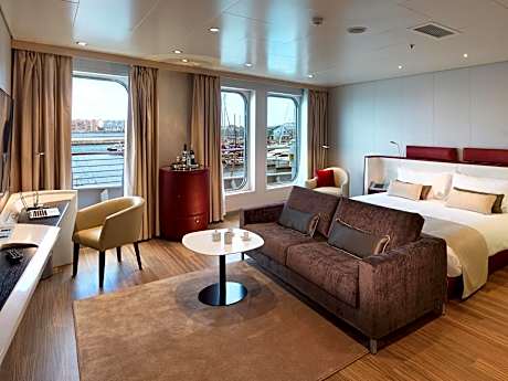 Sunborn Gibraltar offers unique accommodations, onboard a yacht. Located in Gibraltar, this luxury 5-stars yacht-hotel offers an infinity swimming pool, a spa, a gym and a restaurant. Guests can also enjoy free Wi-Fi throughout. Each spacious room, apartment, or suite provides marina, rock, or sea views. With a large flat-screen TV, bespoke design furniture and air-conditioned, accommodations also offers a champagne mini-bar and an elegant bath or shower room. Guests on Sunborn Gibraltar can enjoy fine food and amazing ocean views from the on board restaurants. Barbary Restaurant offers an extensive breakfast buffet and seasonal signature dishes prepared by an international team of chefs. A wide selection of dishes is offered all day long until 7 pm. Gastrobar on deck 3 offers a British inspired menu in an upscale setting with live music during the week ends. Drinks can be enjoyed in the Barbary Bar or Aqua Bar. The top deck is home to the more informal restaurant and Aqua Lounge with an outdoor pool and bar. The spa at Sunborn Gibraltar offers indulgent beauty and hair treatments and a fully fitted out life fitness gym with latest equipment and saunas.