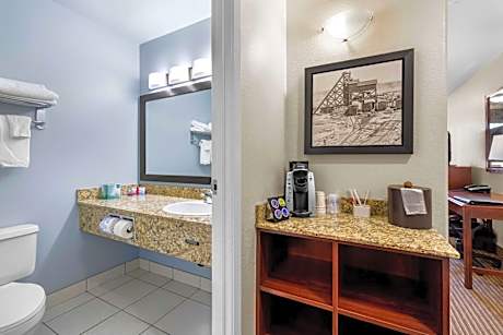 This Drumheller, Alberta hotel is just 5 minutes’ drive from Fossil World Discovery Center. It features an indoor pool with hot tub, a to-go breakfast and pet-friendly rooms with free WiFi. A cable TV and a work desk are furnished in each room at SureStay Plus Hotel by Best Western Drumheller. The simply styled rooms also include a microwave, fridge and coffee-making facilities. SureStay Plus Hotel by Best Western Drumheller offers a hot tub and a fitness room. Guest laundry facilities are available. This hotel is 10 minutes’ drive of the Dinosaur capital of the world – Royal Tyrrel Museum. Midland Provincial Park is 3.7 mi away.