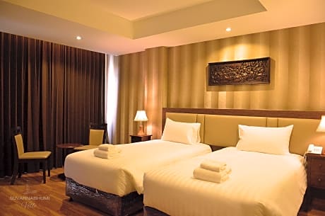 Experience an abundance of unparalleled facilities and features at Suvarnabhumi Ville Airport Hotel.Maintain seamless communication using the complimentary Wi-Fi at resort.Effortlessly arrange transportation to and from the airport using the resort's airport transfer services.Discovering Bangkok becomes even more accessible, thanks to the shuttle amenities provided at the resort. Guests can avail parking facilities at the resort. During your stay at this fantastic resort, the attentive front desk personnel can provide you with a range of amenities such as concierge service, luggage storage and safety deposit boxes. Obtaining passes for the town's top entertainments becomes effortless with resort's tours. Craving relaxation? Make the most of your stay at the Suvarnabhumi Ville Airport Hotel with convenient amenities like room service and daily housekeeping at your disposal. For all your minor, last-minute requirements, the convenience stores can promptly cater to them, eliminating the need to venture out. Kindly note that smoking is prohibited in the resort to ensure fresher air for all visitors. For visitors wishing to smoke, designated smoking zones can be found. At Suvarnabhumi Ville Airport Hotel, every guestroom is provided with convenient amenities and fittings to ensure a comfortable stay. Enhance your experience at resort with the knowledge that certain rooms are equipped with linen service, blackout curtains and air conditioning for your convenience.A few accommodations within Suvarnabhumi Ville Airport Hotel offer unique design elements such as a balcony or terrace. Certain rooms boast in-room amusement features such as television and cable TV, offering guests an enjoyable stay. In select rooms within the resort, a refrigerator, a coffee or tea maker, bottled water, instant coffee and instant tea is available to cater to your requirements when desired. It is worth noting that certain guest bathrooms feature a hair dryer, toiletries and bathrobes for your convenience. Begin your day with a scrumptious on-site breakfast available each morning at Suvarnabhumi Ville Airport Hotel.Begin your day feeling refreshed and invigorated as you enjoy a delightful cup of quality coffee available at the cafe situated within the resort.At the resort, an assortment of easily accessible and delicious meal choices are available to satisfy your appetite whenever it strikes.At Suvarnabhumi Ville Airport Hotel, they are committed to catering to your unique requirements. They offer a variety of meal choices, encompassing halal alternatives for those with special dietary preferences. Create unforgettable moments with your fellow voyagers just steps away, at resort's bar and nightclub, for a delightful evening together.During your stay at resort, an array of engaging activities and amenities guarantees a delightful experience. Conclude your holiday perfectly with a visit to spa and sauna on your final days. Be sure to drop by the pool at resort at least once during your stay.Discover the fitness amenities at resort to maintain your health and strength during your getaway.