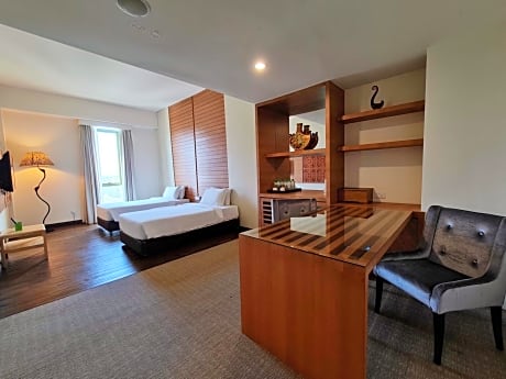 Swan Garden Hotel Melaka offers top-notch services and amenities, ensuring guests experience utmost comfort. Share your photos and respond to emails at your convenience, thanks to the free Wi-Fi internet access offered by hotel.The accommodating team at the reception will aid you with amenities such as luggage storage. Traveling with minimal luggage is achievable at Swan Garden Hotel Melaka due to the hotel's laundry service ensuring your garments stay fresh. Room amenities like room service and daily housekeeping contribute to making a perfect selection for your stay.Minor items you neglected to bring won't cause major issues! Simply visit convenience stores to acquire what's necessary.The hotel maintains a completely smoke-free zone, providing a breathable atmosphere. Each accommodation at Swan Garden Hotel Melaka is thoughtfully created and adorned to provide visitors with a comfortable, home-like atmosphere.In certain rooms, the hotel offers linen service, blackout curtains and air conditioning for guest convenience and satisfaction.At Swan Garden Hotel Melaka, the uniquely tailored rooms provide a configuration choice resembling a balcony or terrace.In select rooms, guests can enjoy a touch of amusement with the availability of television for their entertainment. Rest assured, in a few chosen rooms, you will find the convenience of bottled water, a coffee or tea maker, instant coffee, instant tea and mini bar at your disposal. Swan Garden Hotel Melaka offers a hair dryer and toiletries in the restrooms of specific accommodations. Embark on your holiday experience in the most ideal manner. Commence each morning of your visit with an on-site breakfast. No matter your specific dietary needs, rest assured that Swan Garden Hotel Melaka provides an array of halal choices to ensure your dining experience is nothing short of delightful. Swan Garden Hotel Melaka provides a superb assortment of leisure amenities for guests to enjoy.Unwind after your day by exploring the massage and find warmth and relaxation.For individuals who don't want to skip their exercise routine, visiting the hotel fitness center ensures you maintain your vitality and wellness.