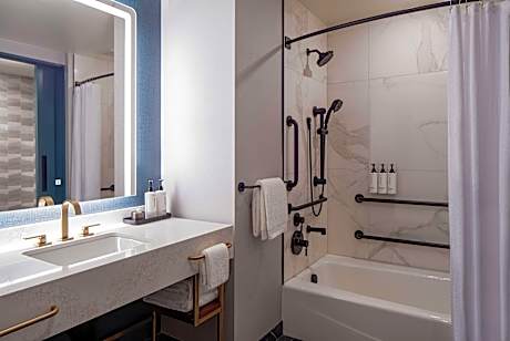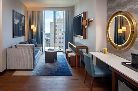 Situato a Nashville, a 7 minuti a piedi dalla Bridgestone Arena, il Tempo By Hilton Nashville Downtown offre sistemazioni con piscina stagionale all'aperto, parcheggio privato, centro fitness e salone in comune. Questo hotel a 3 stelle offre il servizio in camera e una reception aperta 24 ore su 24. La struttura dista 6 minuti a piedi dal Ryman Auditorium e 360 metri dal centro città. Tutte le camere sono dotate di aria condizionata, area salotto, TV via cavo, cassaforte e bagno privato con vasca o doccia, set di cortesia e asciugacapelli. Le camere sono dotate di frigorifero. Il Tempo By Hilton Nashville Downtown ospita un ristorante di cucina americana. Su richiesta sono disponibili anche opzioni vegetariane, senza lattosio e vegane. La struttura vanta una terrazza solarium. Tra i luoghi di interesse più popolari nelle vicinanze del Tempo By Hilton Nashville Downtown figurano il Johnny Cash Museum, il Nissan Stadium e la Country Music Hall of Fame and Museum. L'Aeroporto Internazionale di Nashville dista 9 km.