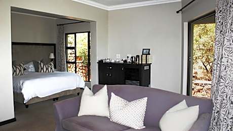 These air-conditioned double rooms have views of either the pool or indigenous bush.