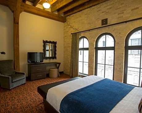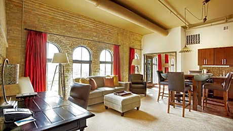 Located inside the old Pabst Blue Ribbon Brewery, this historic Milwaukee hotel is a 12-minute walk away from BMO Harris Bradley Center and offers an outdoor beer garden, and free WiFi. Every room at Brewhouse Inn and Suites features artful décor coupled with modern amenities, including a flat-screen TV with premium cable channels and fully-equipped kitchens with a dining table and chairs. Jackson’s Blue Ribbon Pub offers classic American bar food for lunch and dinner. For convenience, in-room dining services are available for guests. Guests can work out at the on-site fitness center or relax on the hotel’s green roof terrace. A business center and guest laundry services are also available. The Harley-Davidson Museum, Miller Park and the Milwaukee Art Museum are all within 2 miles of the hotel. General Mitchell International Airport is a 15-minute drive away.
