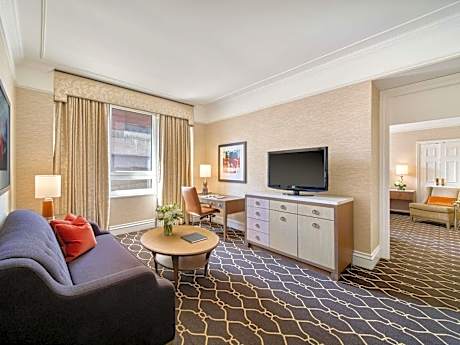 Featuring a large indoor pool and hot tub, this luxurious hotel is connected to the Calgary Telus Convention Center by skywalk. Several on-site dining options are available. Guest rooms feature cable TV with pay per view and a work desk. Calgary Tower is only 328 ft away. A coffee maker, mini-bar, and ironing facilities are provided in the air-conditioned rooms at The Fairmont Palliser. The private bathroom include a bathrobe and hair dryer. Select rooms include a seating area and a view of the city. The Fairmont features a 3rd party state-of-the-art day spa and health club with a fitness center with strength and cardiovascular equipment and a steam room. Laundry and dry cleaning services are available. Scotiabank Saddledome and the Calgary Stampede are only 5 minutes' drive away. The Calgary Zoo is 2.5 mi from the property.