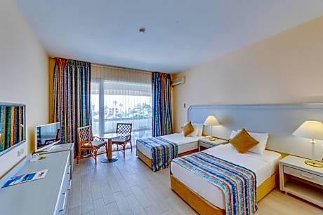 With an infinity pool overlooking the Aegean Sea, this beachfront resort provides rooms with panoramic sea views. It is located 1.9 mi from central Kusadasi and features free WiFi access. The air-conditioned rooms of The Grand Blue Sky International are bright and spacious. They all offer private balconies, satellite TV channels and include private bathrooms with a bathtub. Guest can choose among the 3 a-la-carte restaurants for 1 night per stay, serving a selection of fresh sea food, Italian gastronomy and traditional Ottoman cuisine. Facilities of The Grand Blue Sky range from a diving school, to tennis courts and a hammam. The hotel organizes theme nights and a professional entertainment team runs the children's club. Nearby attractions include Kirazli, a traditional Turkish village and the Dilek Peninsula National Park, both within a 30-minute drive. Izmir Adnan Menderes Airport is 50 mi from the property. License Number(s): 2853